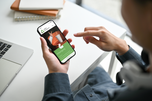 Das neu entwickelte Markenbild vereint das klassische Recycling-Symbol mit der Silhouette von Flaschen und schafft so ein prägnantes Zeichen mit klarer Botschaft. Die eingesetzte Schrift Manrope ergänzt das Icon mit einem modernen, leicht technischen Charakter und verstärkt den zeitgemässen Markenauftritt. Die Farbpalette orientiert sich an der charakteristischen Muldenfarbe und wird in harmonischen Abstufungen eingesetzt, wodurch ein konsistentes und wiedererkennbares Erscheinungsbild entsteht.